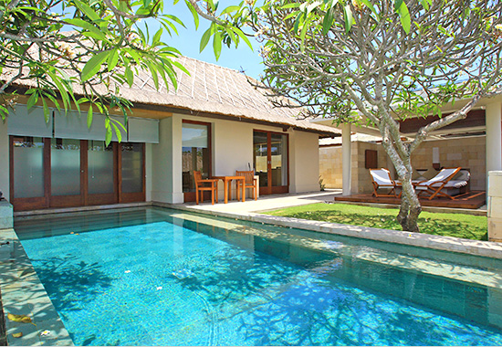 ヌサドゥア・べノア地区ではとても貴重なビーチに面した全室プール付きのラグジュアリーリゾート。基本のヴィラでも300平米もの広さを誇り、まるで別荘のような贅沢感。お子様のご宿泊も可能となりましたので、ファミリーでのご滞在もお楽しみ頂けます。