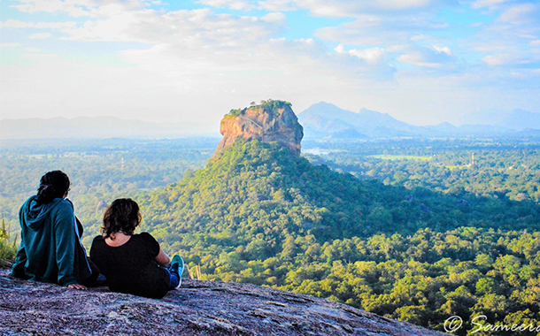 シギリヤロックの楽しみ方はシギリヤロック登頂だけではありません。シギリヤロックを一望できるおすすめスポットはピドゥランガラロック。ジャングルとその中心にそびえるシギリヤロックの両方を捉えることができる絶景パノラマビューです。長い石段や岩の間を登り抜け、途中大きな涅槃仏を見学しながら、約1時間ほどで頂上に到着。体力は必要ですが、地元の人にも人気の感動おすすめスポットです。