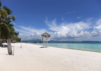 ■ステーション1:真っ白できめ細かいパウダーサンドの砂浜が広がる。ボラカイ島の中でも一番の綺麗さを誇り遠浅のスカイブルーの海は透明度も抜群