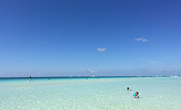 目の前は極上のホワイトサンドビーチと遠浅の海を