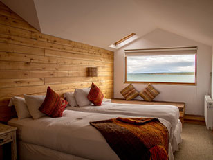 プエルトナタレスから車で北へ10分程の所にある、プエルトボリエス港の傍にあるデラックスクラスホテルです。20世紀の古い倉庫を利用して建てられた外観が特徴的で、フィヨルドの風景を満喫していただけるようお部屋の窓は幅6mと大きく造られています。レストランやスパも充実していてホテル内ではゆったりとお過ごし頂けます。
